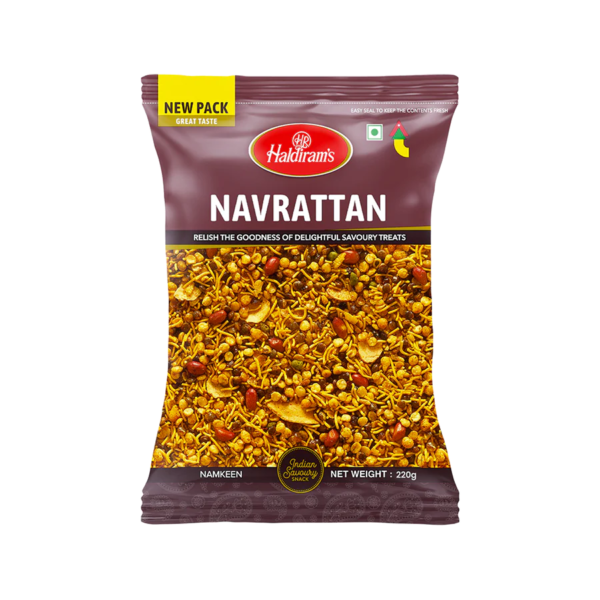 Haldiram Navrattan Mix is a delightful Indian snack that offers a variety of flavors and textures. This mixture includes a combination of sev, peanuts, and fried lentils, seasoned with aromatic spices. It provides a perfect balance of savory and crunchy elements, making it a popular choice for snacking.